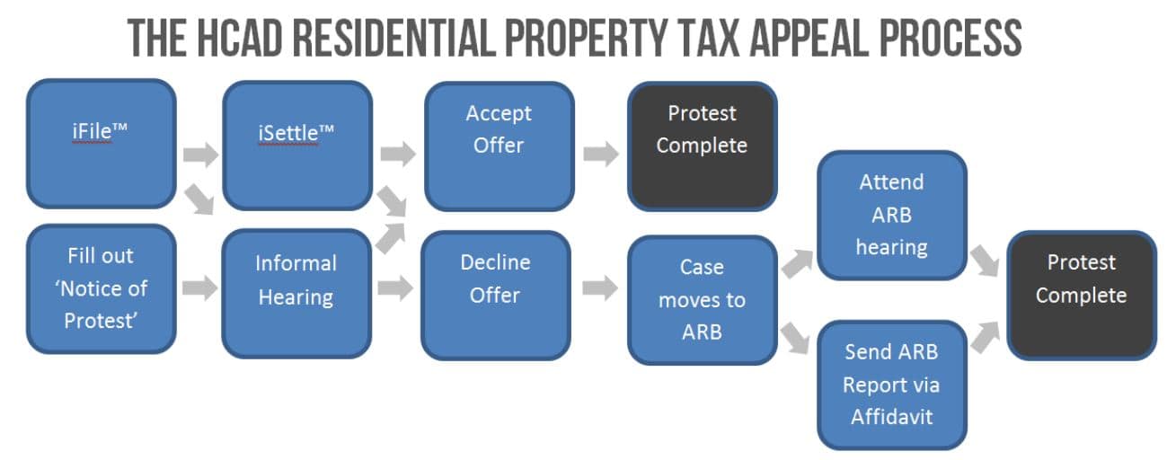 If you don’t accept HCAD’s offer, you’ll be scheduled for an ARB hearing. Here, you’ll present your entire appeal evidence package to 3 impartial citizens. You’ll need to make 5 copies of your evidence (1 for you, 3 for the ARB members, and 1 for the HCAD Appraiser). Most ARB hearings last around 10-15 minutes. Read tips for an ARB hearing here.